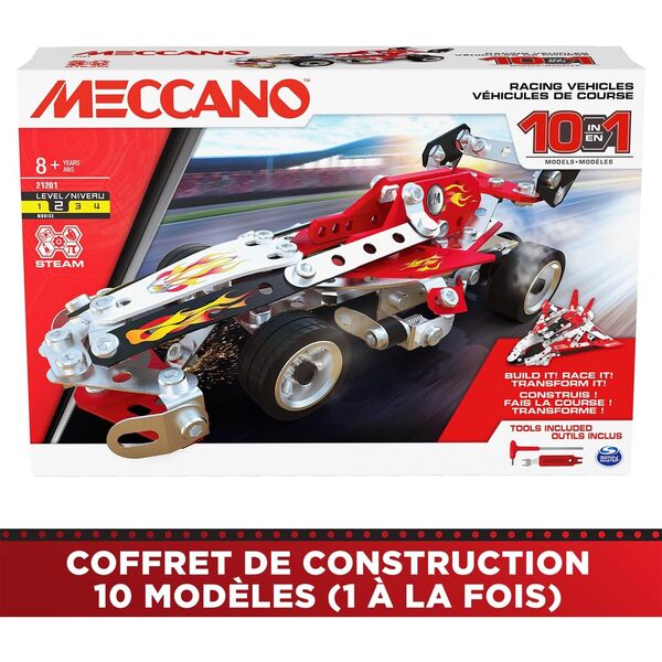 Vous êtes fan de voitures de course et de jeux de construction ? Alors alliez vos deux passions avec ce magnifique coffret Meccano contenant les pièces pour réaliser une voiture de course 10 modèles !